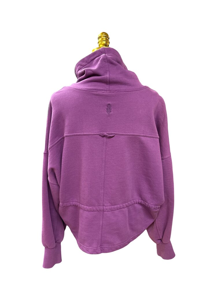 purple long sleeve with waist tie and cowl neck