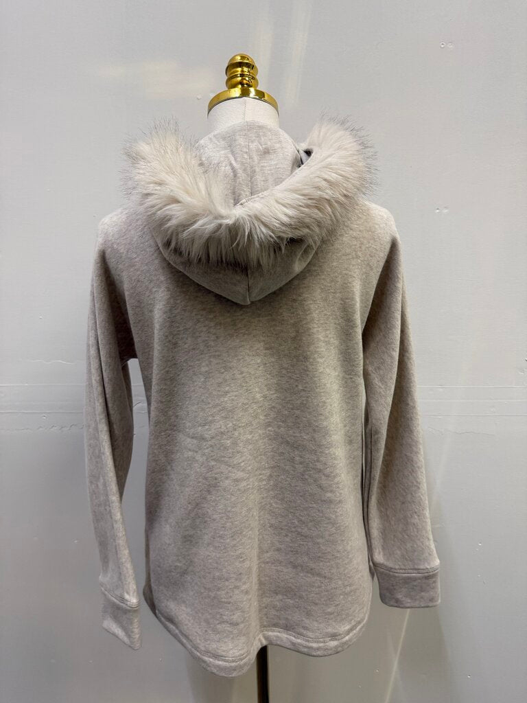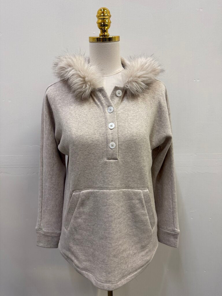 Oatmeal fleece 1/4 button up hoodie fur lined