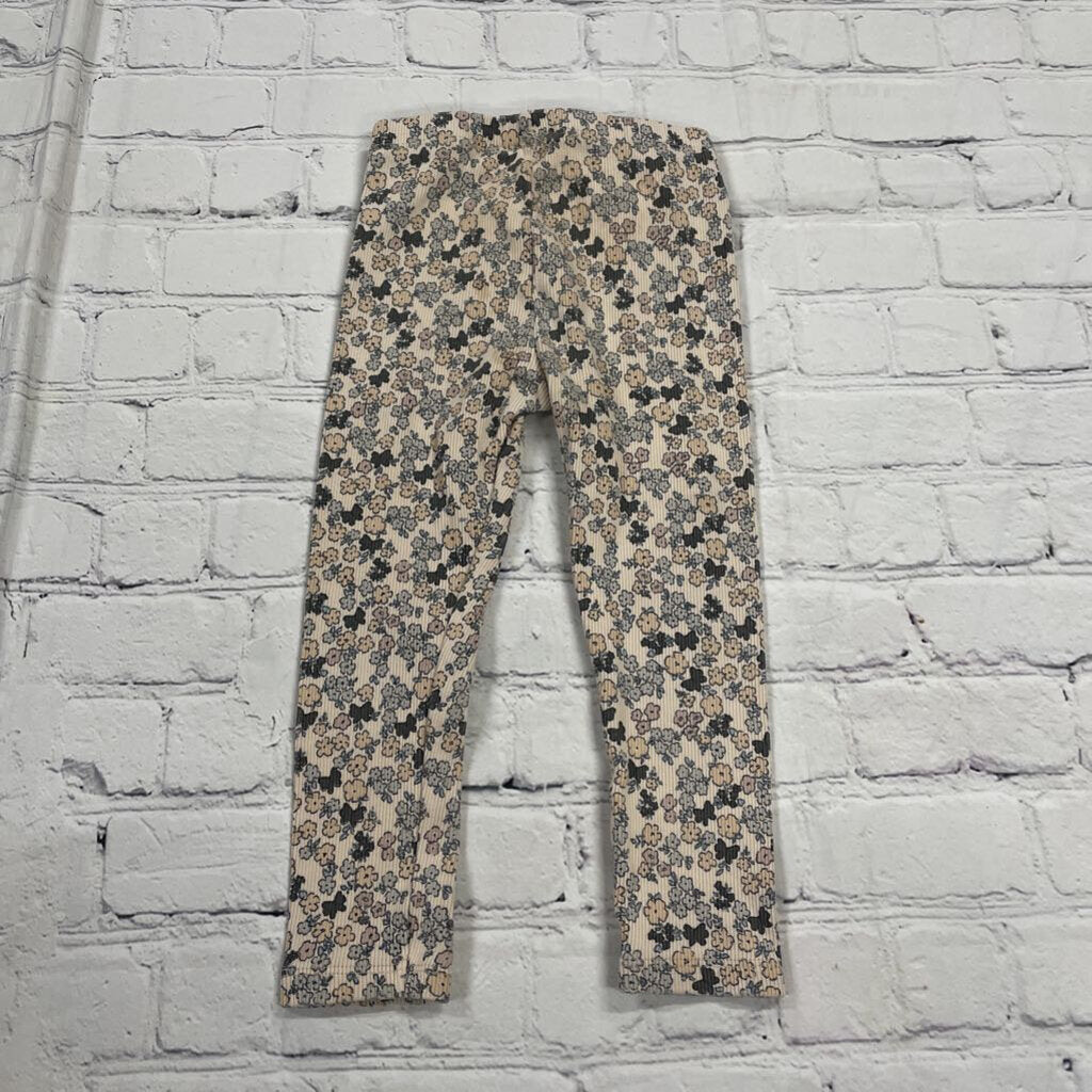Cream leggings with muted blue, pink, yellow floral and butterfly